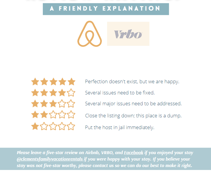 Please leave a five-star review on Airbnb, VRBO and Facebook if you enjoyed your stay @HumbleBeeCottage-Cullman. If you believe your stay was not five-star worthy, please contact us so we can do our best to make it right.