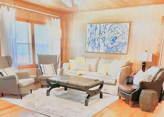 Serene sanctuary filled with natural light. This home has a front and back covered porch and country views of the neighboring properties. Perfect for relaxing, drinking a cup of coffee or tea or a glass of wine, and taking in the sounds of nature. Furnished with a King, Queen & Full Beds, your family will enjoy this home away from home nestled in the County with convenient access to City restaurants and shopping less than 2.5 miles away.